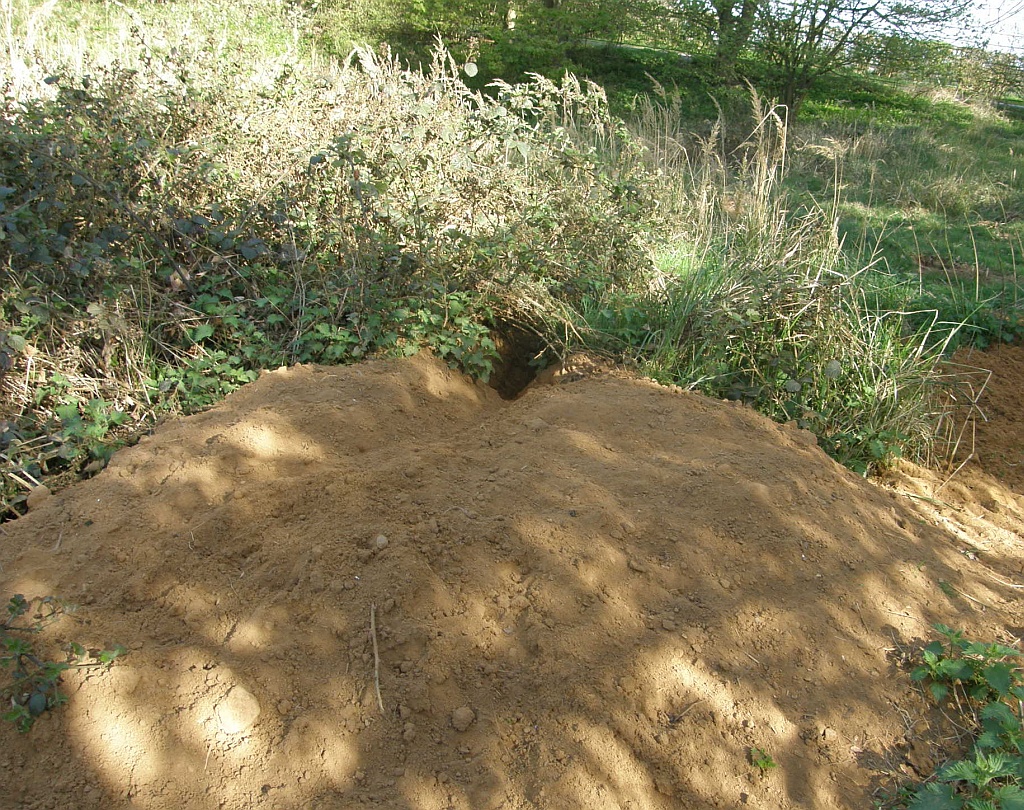 Here’s another classic sign of an active badger sett in the picture below – old bedding that has been dug out and discarded with the spoil. The use of bedding is a distinctive badger behaviour that you can use to tell a badger sett from a hole used by rabbits or foxes.