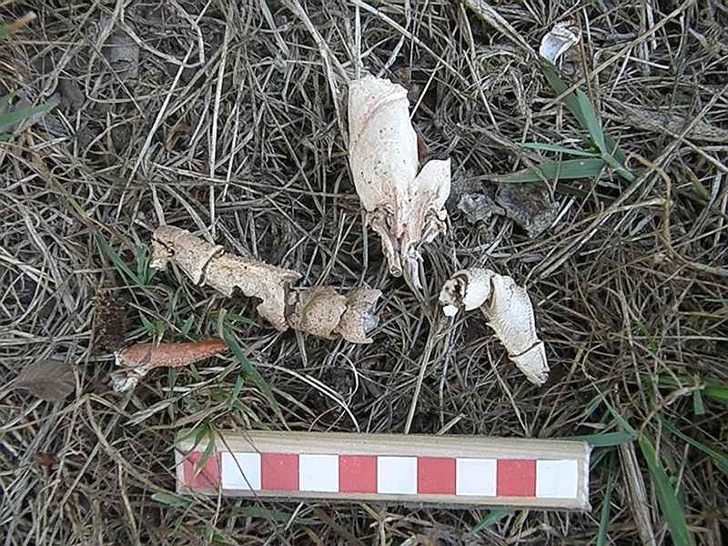 ‘Slightly coiled, often twisted and with tapering ends. Up to 7cm long, about 0.5cm in diameter. Contain bone and fur fragments. Often in regular latrines’.