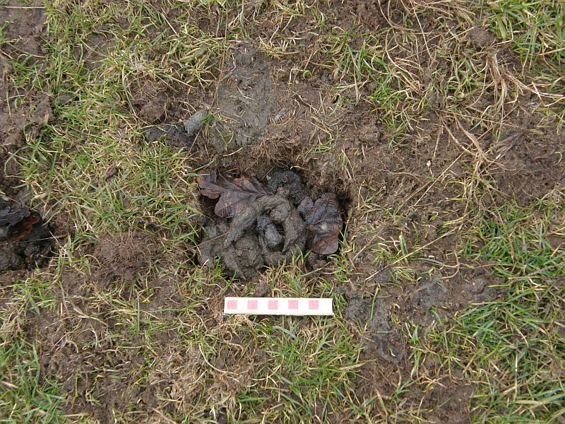 Dung pits are a particular feature of badger territories. Badgers do not deposit their dung just anywhere, they use special pits. Badgers use dung as a territory marker, so you will often find dung pits on badger paths around the edge of their territory. Dung pits look very much like snuffle holes, but with dung in them.