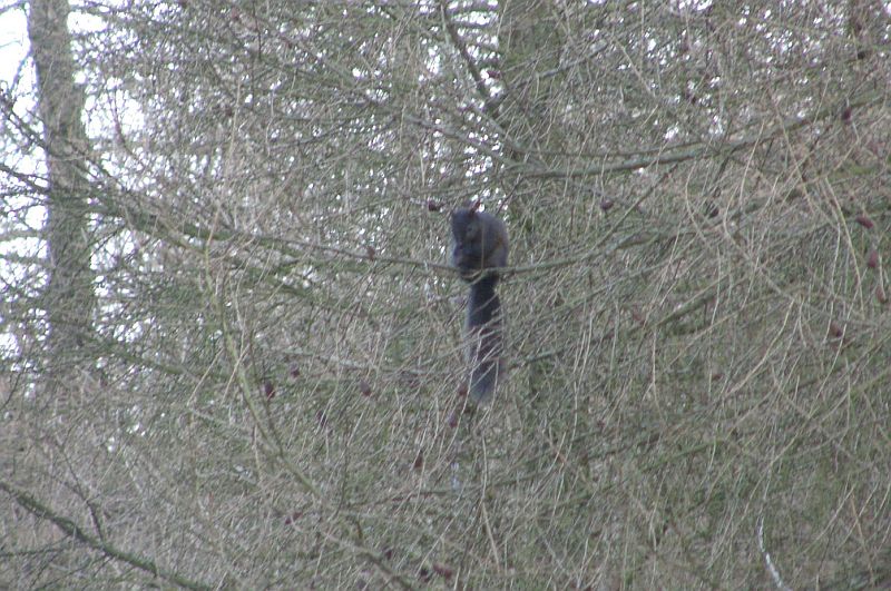 Unfortunately the squirrel was quite distant so it was at the very limit of my camera zoom, but it is unmistakeably a black squirrel. I feel a little bit like those people who photograph Bigfoot, only to get home and find the picture only shows a dark blur in the distance, but at least I know it was there.